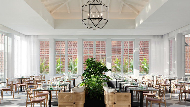 As reflected in its name, the 198-room boutique hotel is a gathering place where food, drink, entertainment, conversation, education, reflection, and more can be shared by all in a vibrant setting. Anchoring the on-property dining are Birch & Bloom, a modern steakhouse with regional influences, and The Good Sport, a neighborhood craft beer bar with brews and familiar bar fare.