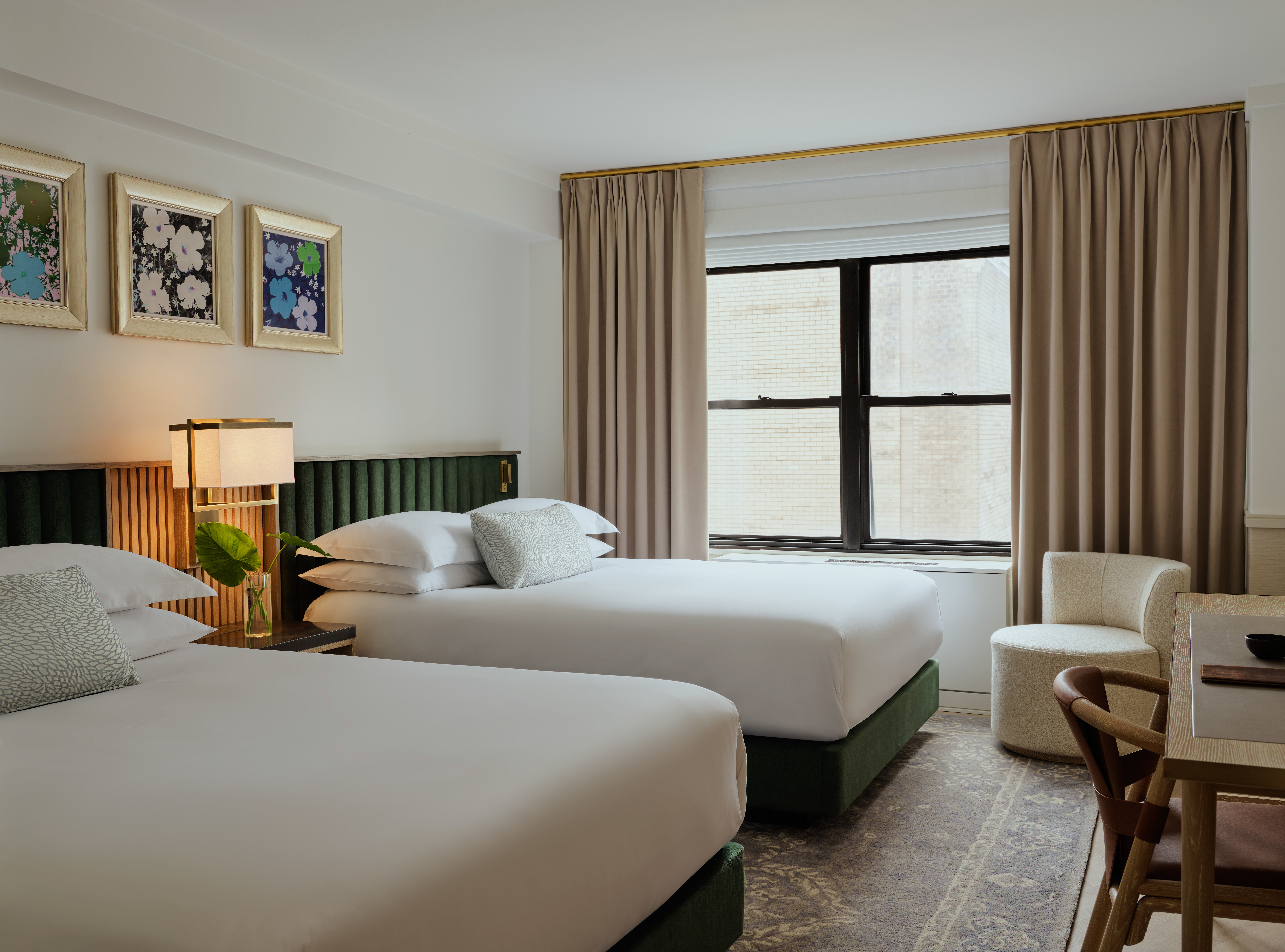 Kimpton Hotels made their debut in New York City on this very property in 2004, and as fate would have it, with this large-scale renovation, 70 Park Avenue has returned to the Kimpton family. Now transformed with a revived outlook, guests can find winks of curiosity that are quintessentially Kimpton around every corner. Warm woods, soft pallets and curated gold accents are layered with playful flushes of color and eclectic artworks through design concepts led by Busta Studio. Furnishings were custom designed for the hotel, combining refined metal accents with organic textures to give each space a distinct sense of character.